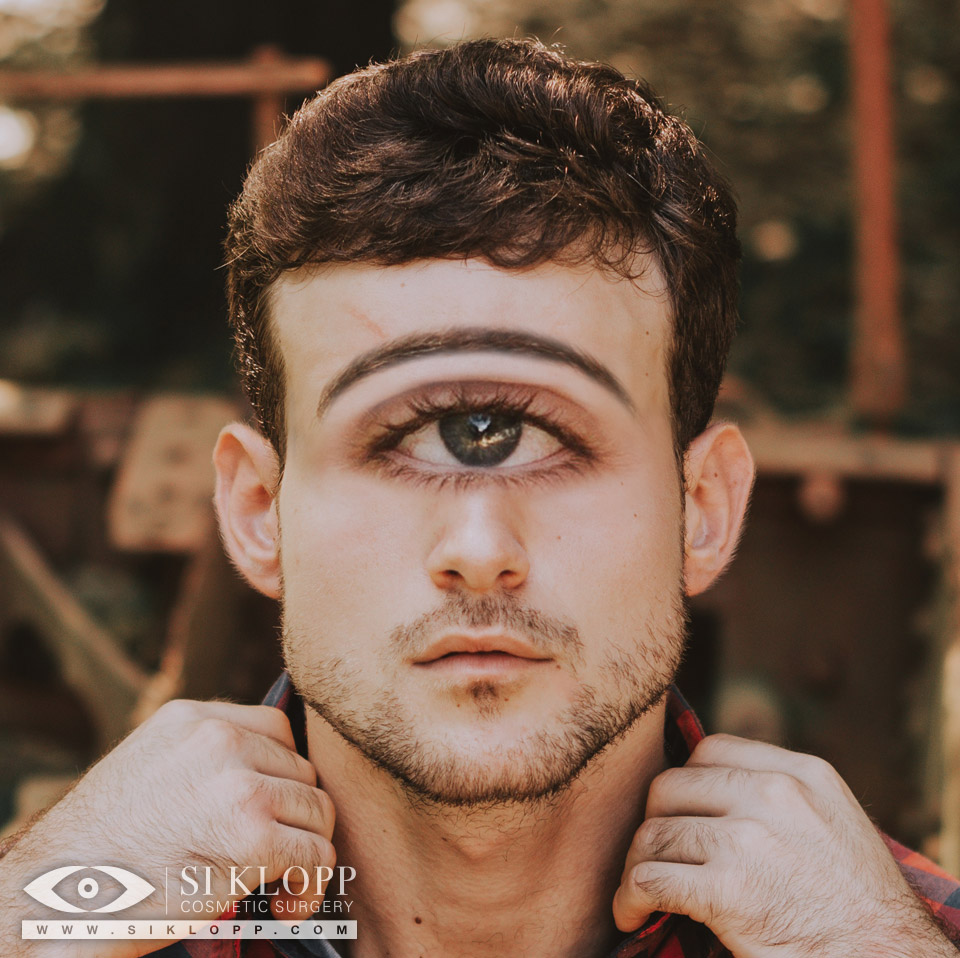 He approached us as Si Klopp Cosmetic Clinic to see if we could support him in having the Eye Reduction Surgery. After a consultation and a lengthy discussion, he concluded he would like Dr Von Eyid to complete his ‘Cycloped’ surgery and also selected from the extras pack of have his eyebrows sculpted into unibrow that compliments his new one-eyed look.